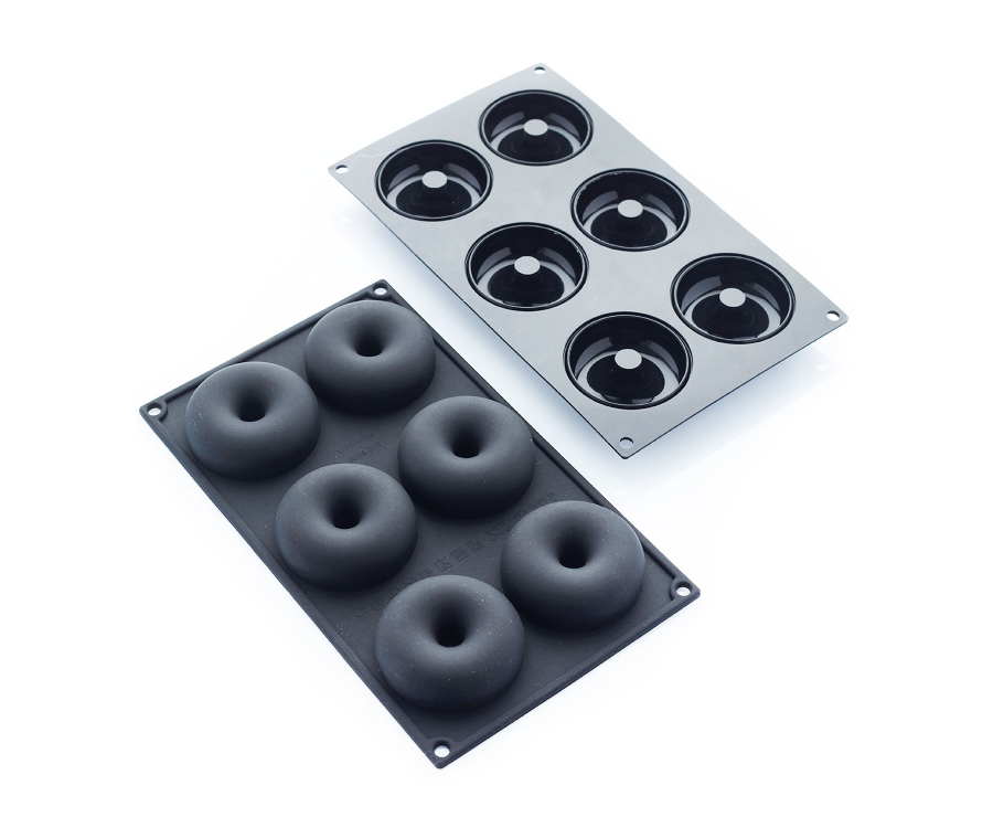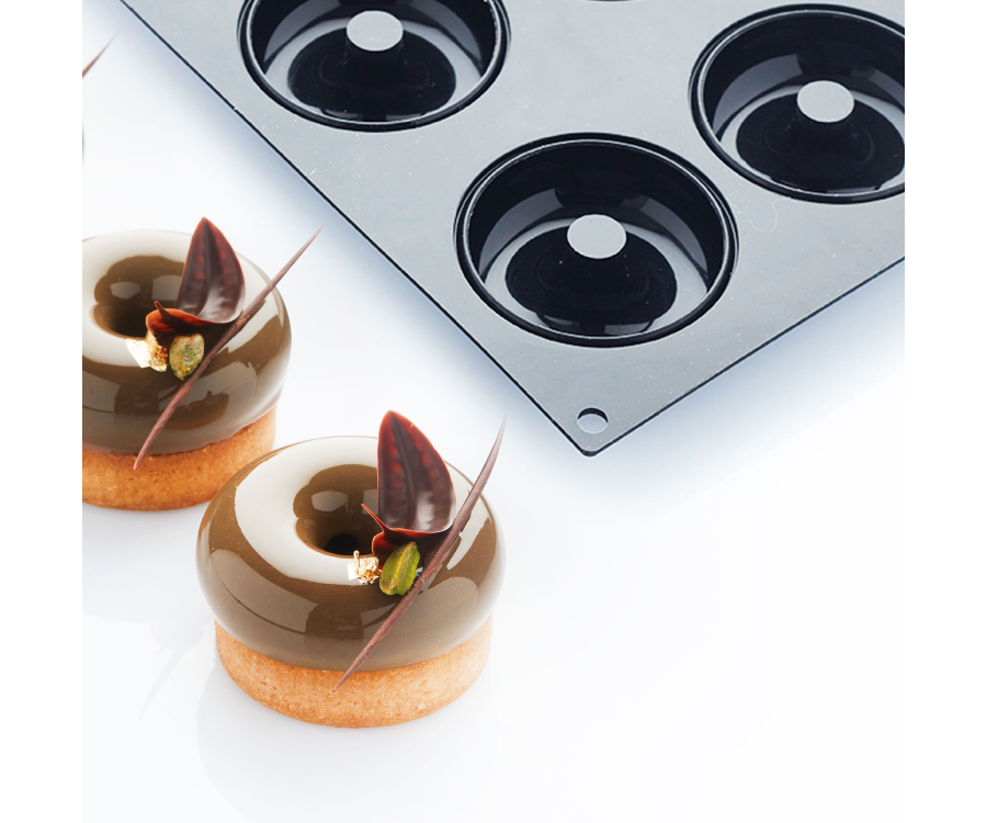 Stampo in silicone alimentare ideale per la realizzazione di monoporzioni e individual cake a forma di ciambella. L’alta qualità del silicone antiaderente permette una sformatura facile e precisa.