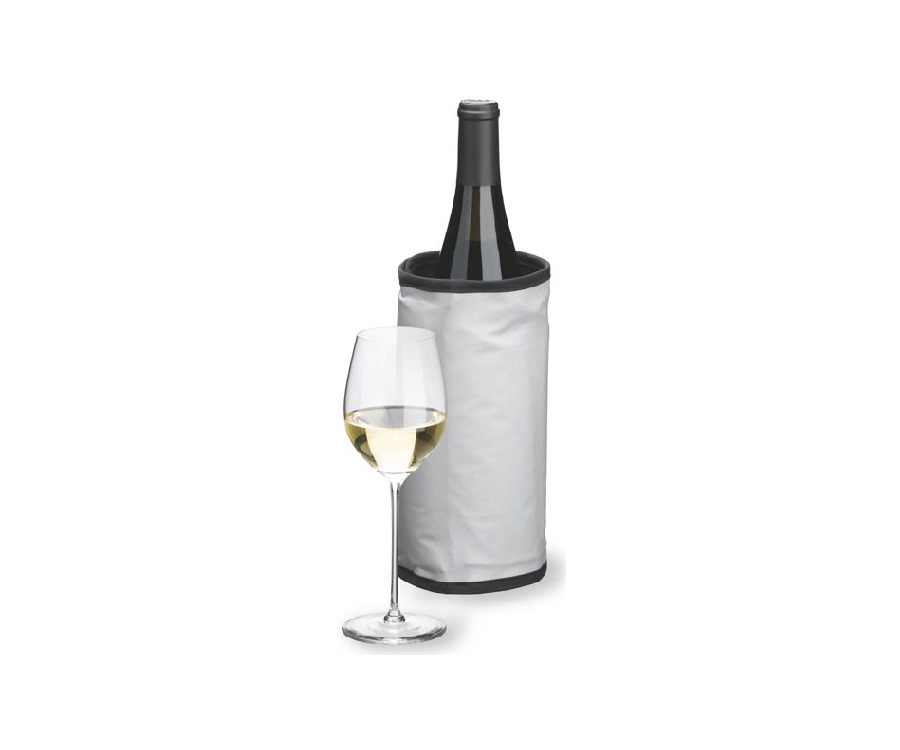 Refrigeratore rapido lato esterno in nylon color silver lato interno in nylon color nero bordo nero, chiusura in velcro nero imbottitura in gel misura: 22×39,5 cm Si adatta a bottiglie fino a max Ø 8 cm; per raffreddare: conservare in freezer; per riscaldare: mettere 1 minuto nel microonde a 750W